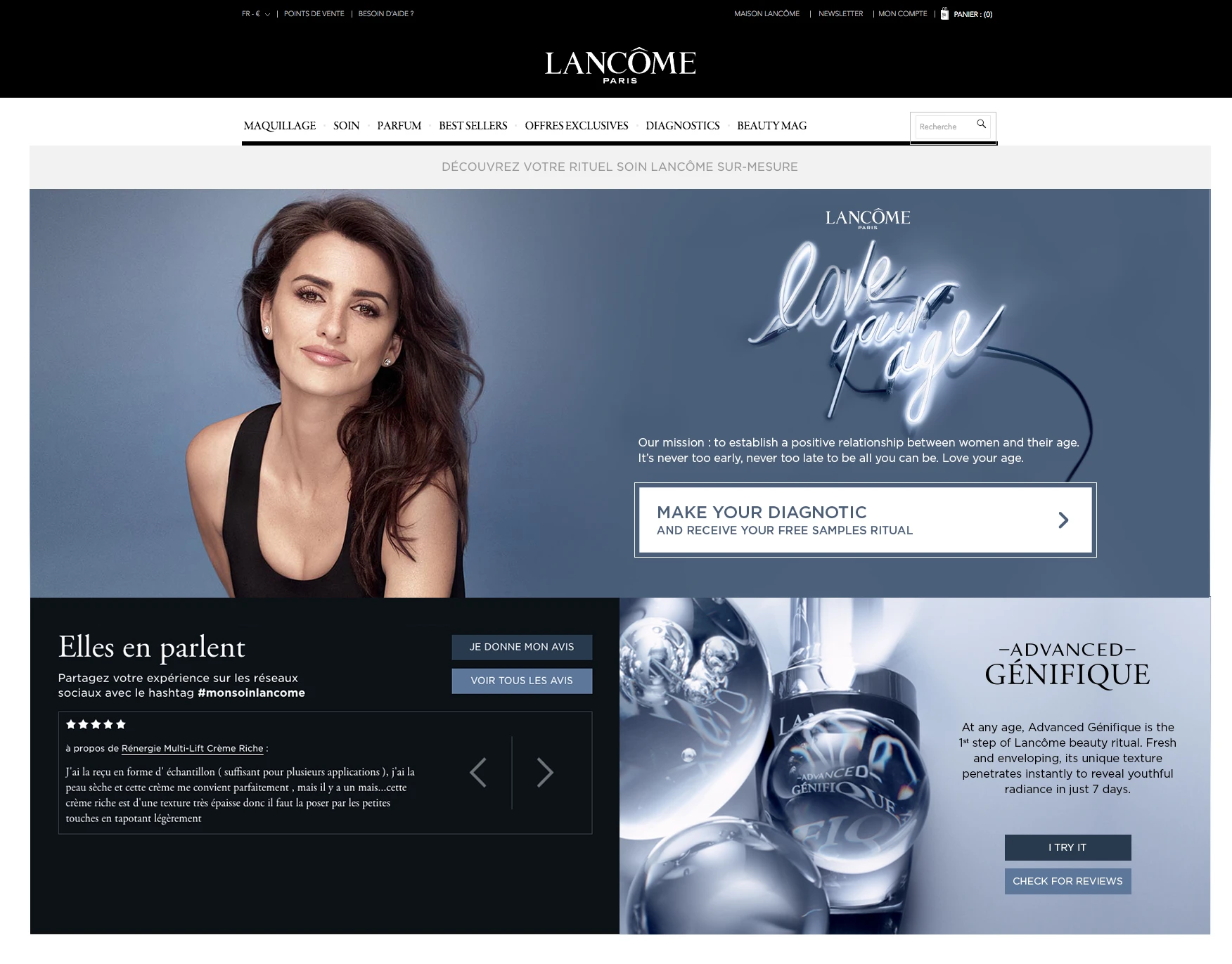 À l’occasion du lancement de sa nouvelle campagne “The More I Live, The Younger I Am”, Lancôme souhaitait déployer une stratégie globale cohérente pour faire émerger l’univers de la gamme Advanced Génifique auprès de ses audiences cibles. Nous avons imaginé une stratégie d’activation digitale reposant sur des contenus adaptés aux différents canaux (réseaux sociaux, site internet, salons professionnels …), avec une attention particulière portée à la cohérence visuelle, à l’émotion et à la portée internationale du message.