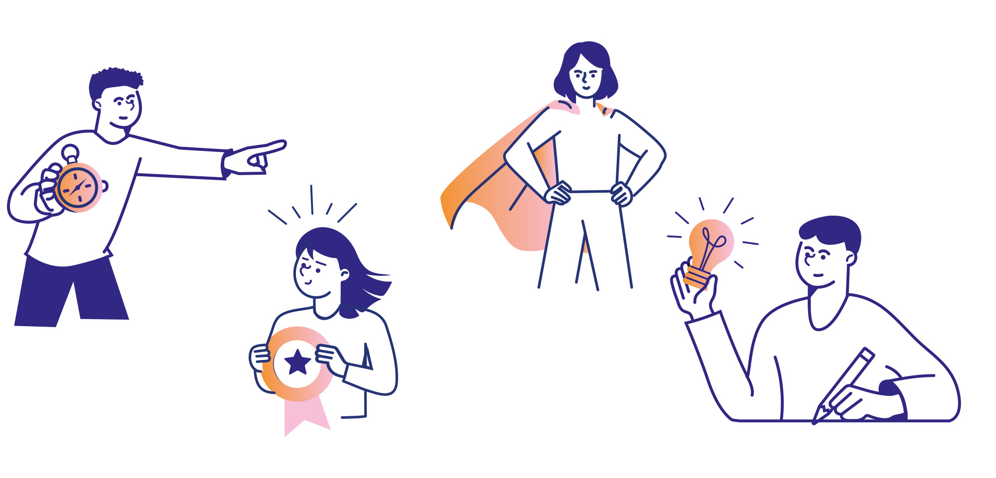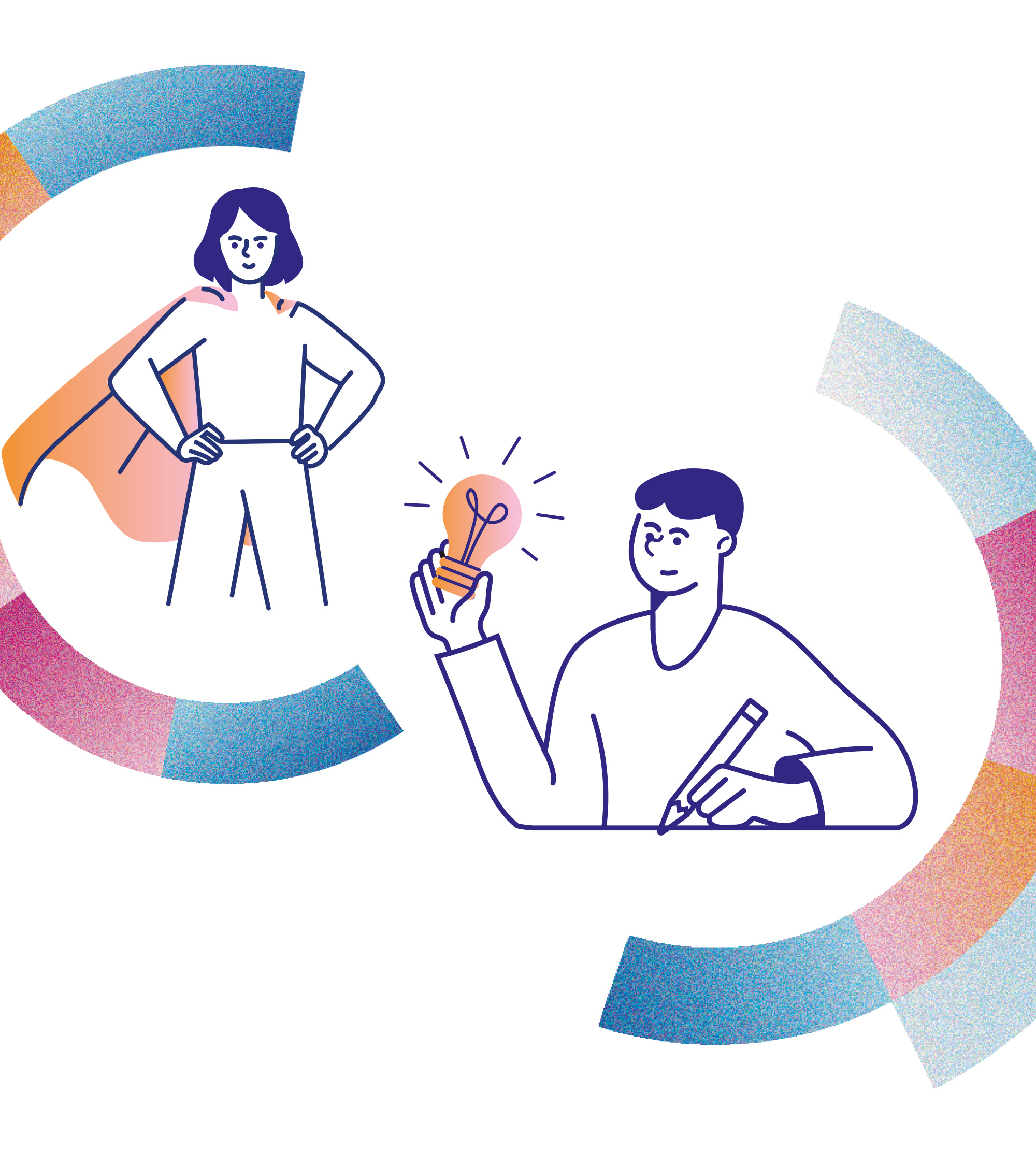 Le concept s’articule autour d’un motif abstrait central, métaphore visuelle de l’unité et du rayonnement collectif. Ce système graphique modulaire se décline sur l’ensemble des supports, complété par une série d’illustrations symbolisant les piliers des valeurs du management.